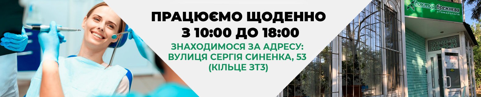 Стоматологія Брежнева — турбота для всієї родини 1. Сімейна знижка — 10% на лікування2. Щосереди пацієнтам віком 55+ — знижка...